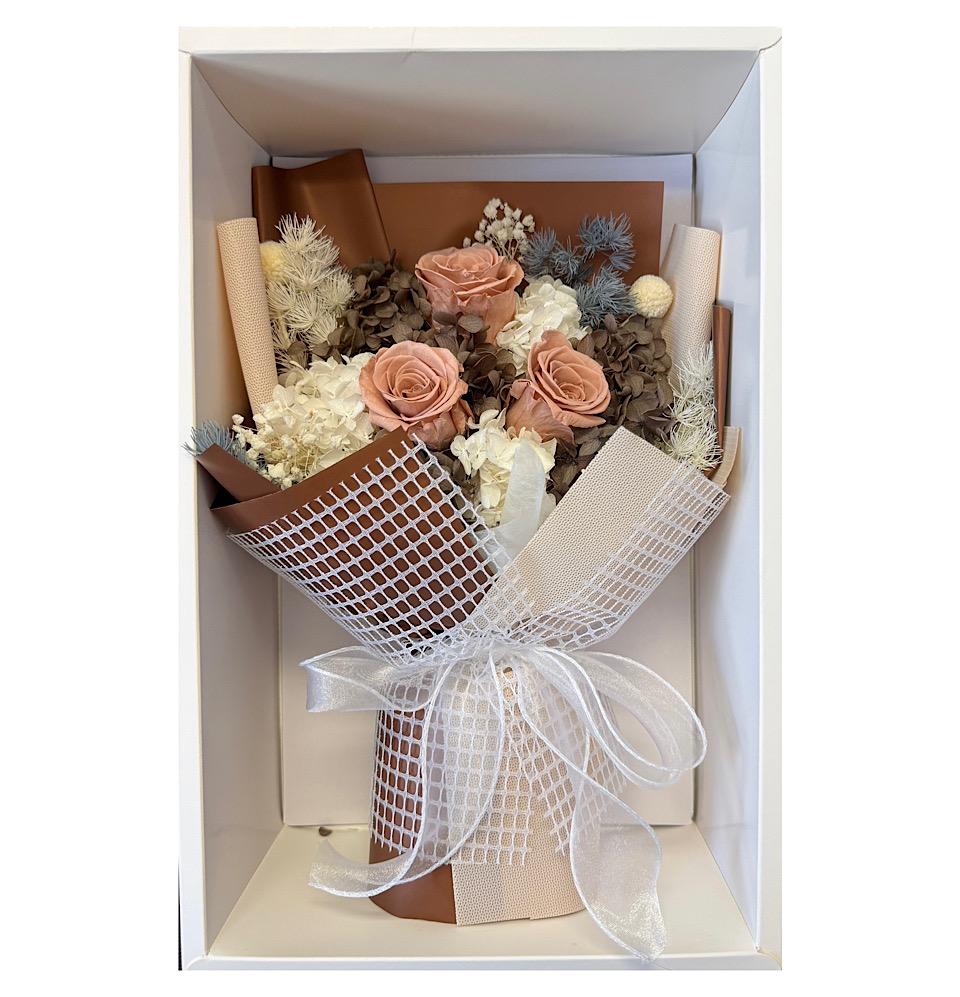 This beautiful Everlasting Latte Arrangement is the perfect gift for Valentine's Day, Birthday, Anniversary. With its vibrant and long-lasting flowers, it is sure to brighten up any space. Surprise your mom with this stunning arrangement and make her day even more special. Order now for Valentine's Day flower delivery.